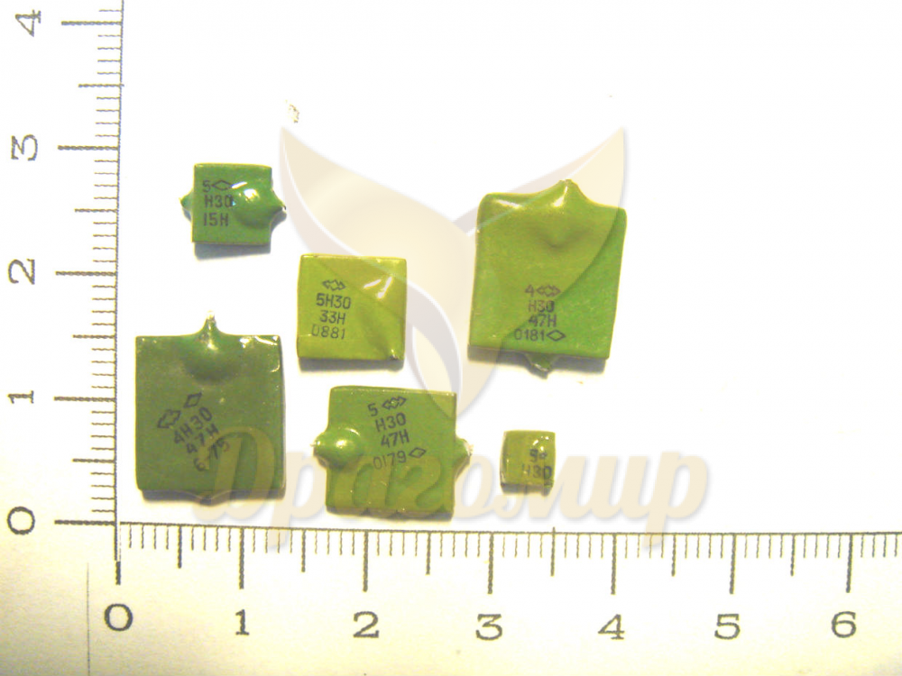 Наша компания принимает конденсаторы КМ в зеленом корпусе всех размеров с литерой D в маркировке. Данная маркировка указывает на параметры температурной стабильности и соответствует группе Н30 – при изменении температуры в диапазоне от -60 до +85 °C изменение емкости не превышает 30%. ТКЕ (температурный коэффициент емкости) здесь ненормируемый, линейной зависимости нет.